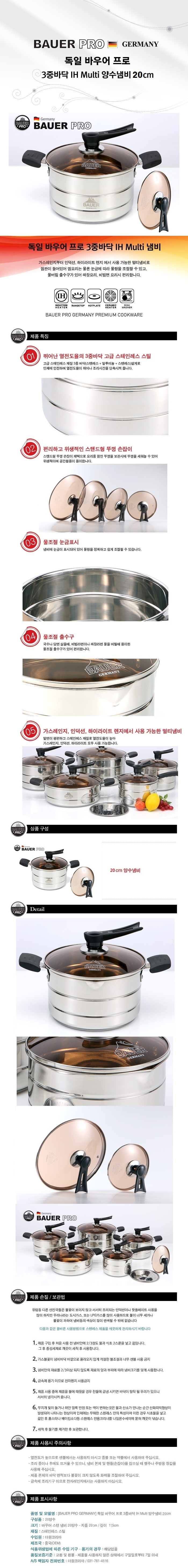 NEW 독일 바우어 프로 3중바닥 IH 양수냄비 20cm