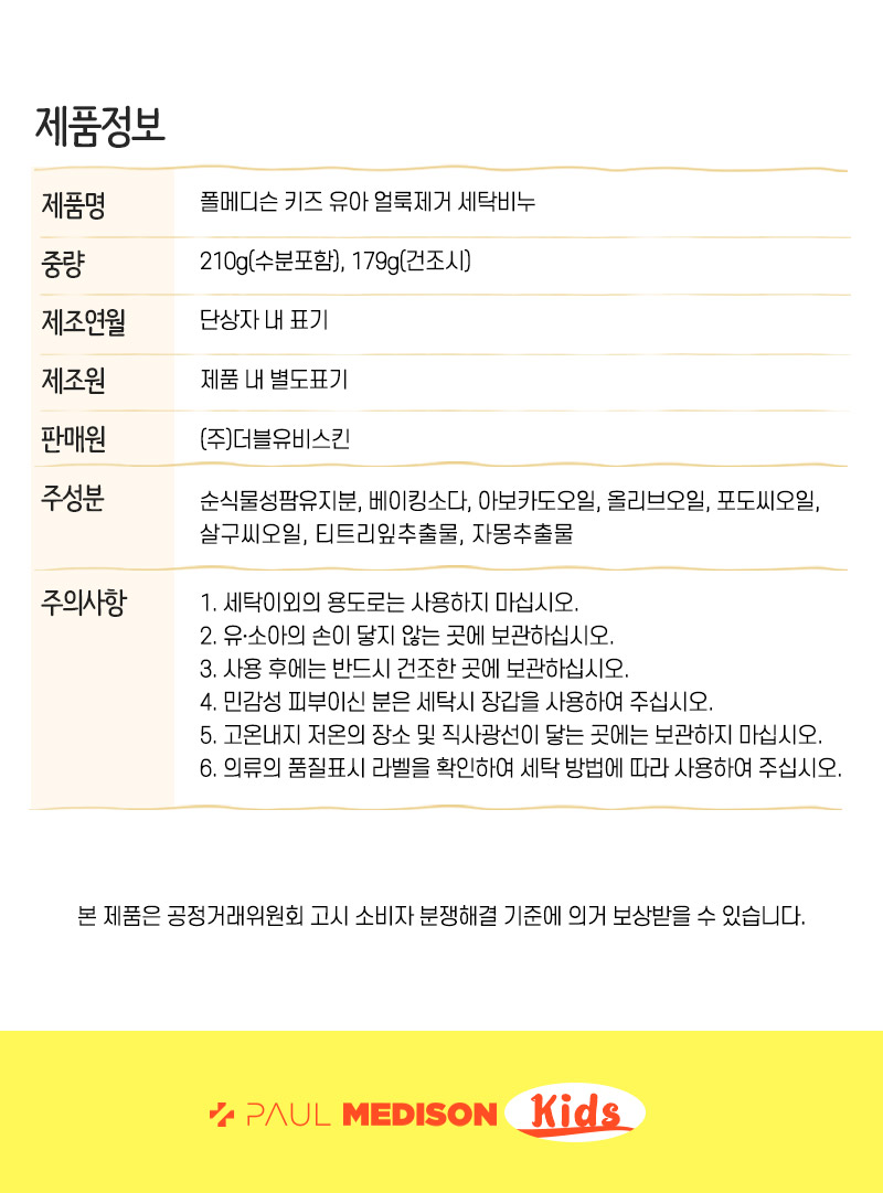 [폴메디슨] 키즈 유아 얼룩제거 세탁비누