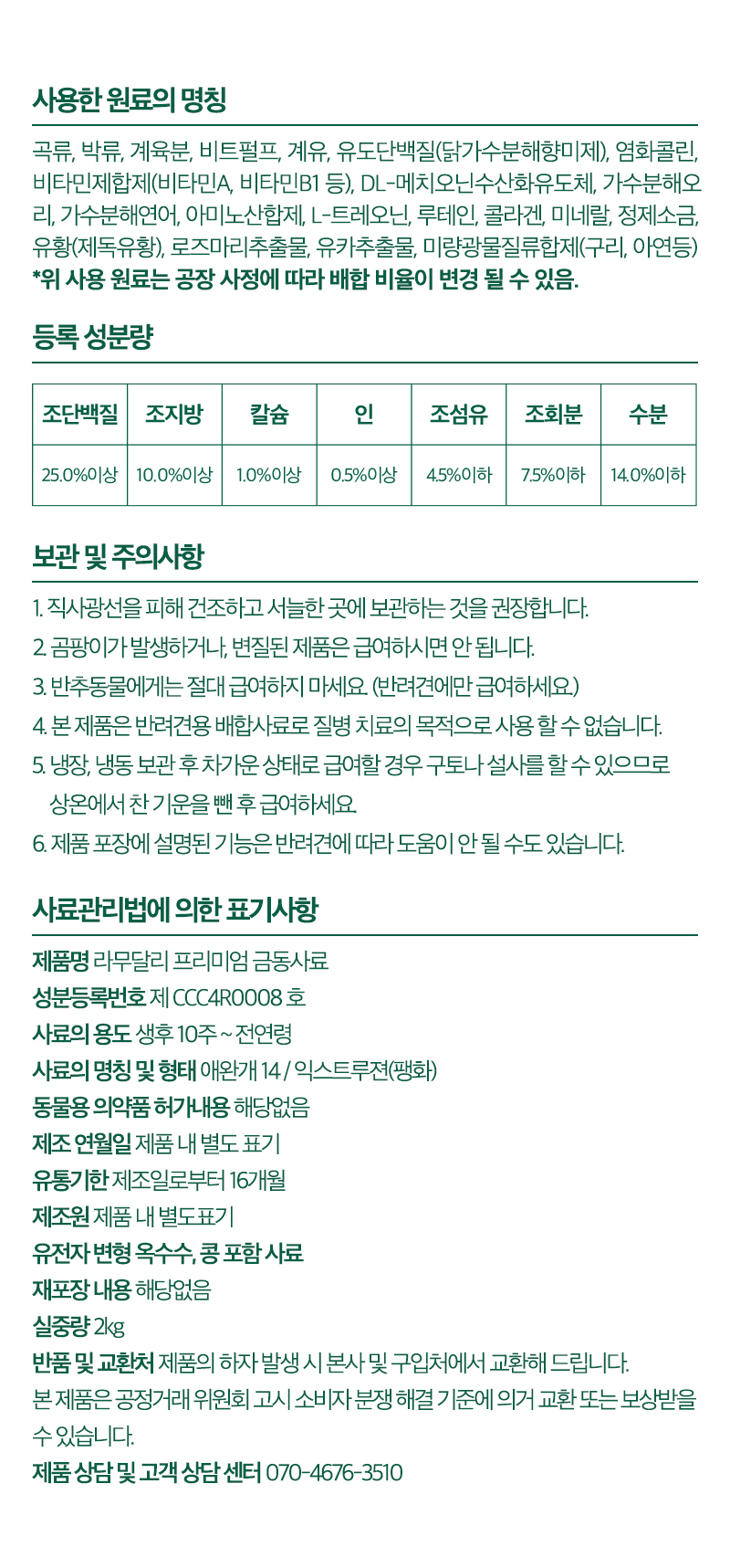 [라무달리] 프리미엄 금동사료