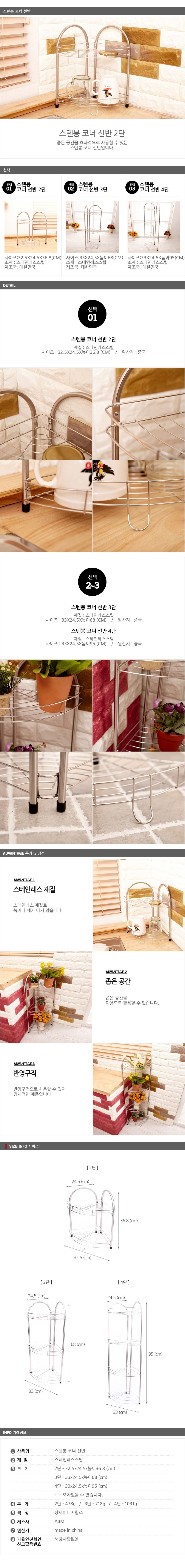 스텐봉 코너 선반 2단