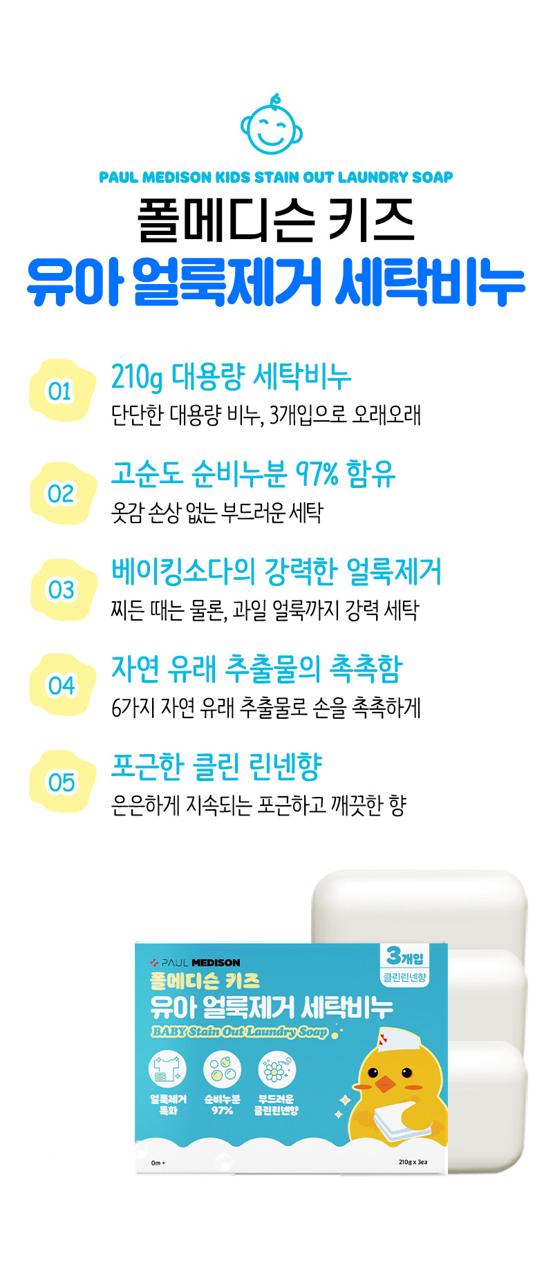 [폴메디슨] 키즈 유아 얼룩제거 세탁비누