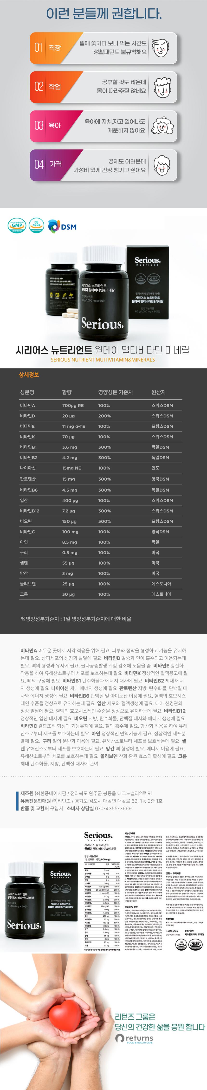 시리어스뉴트리언트 원데이 멀티비타민&미네랄